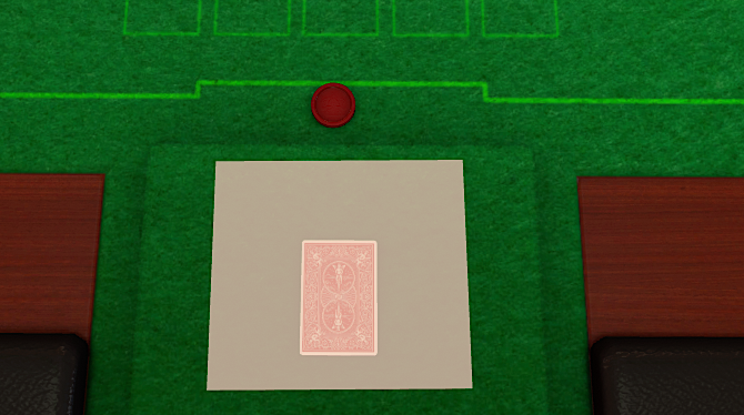 상단메뉴의 Objects > Tables 에서 Poker를 선택합니다. 그리고 버튼을 생성할 Red Checker 하나와, 포커를 진행할 Standard 카드 한 벌을 생성하여 테이블 하단부에 놓습니다. 그리고 왼쪽 메뉴의 Zone > Scripting을 통해 덱을 스크립트 구역으로 감싸줍니다.