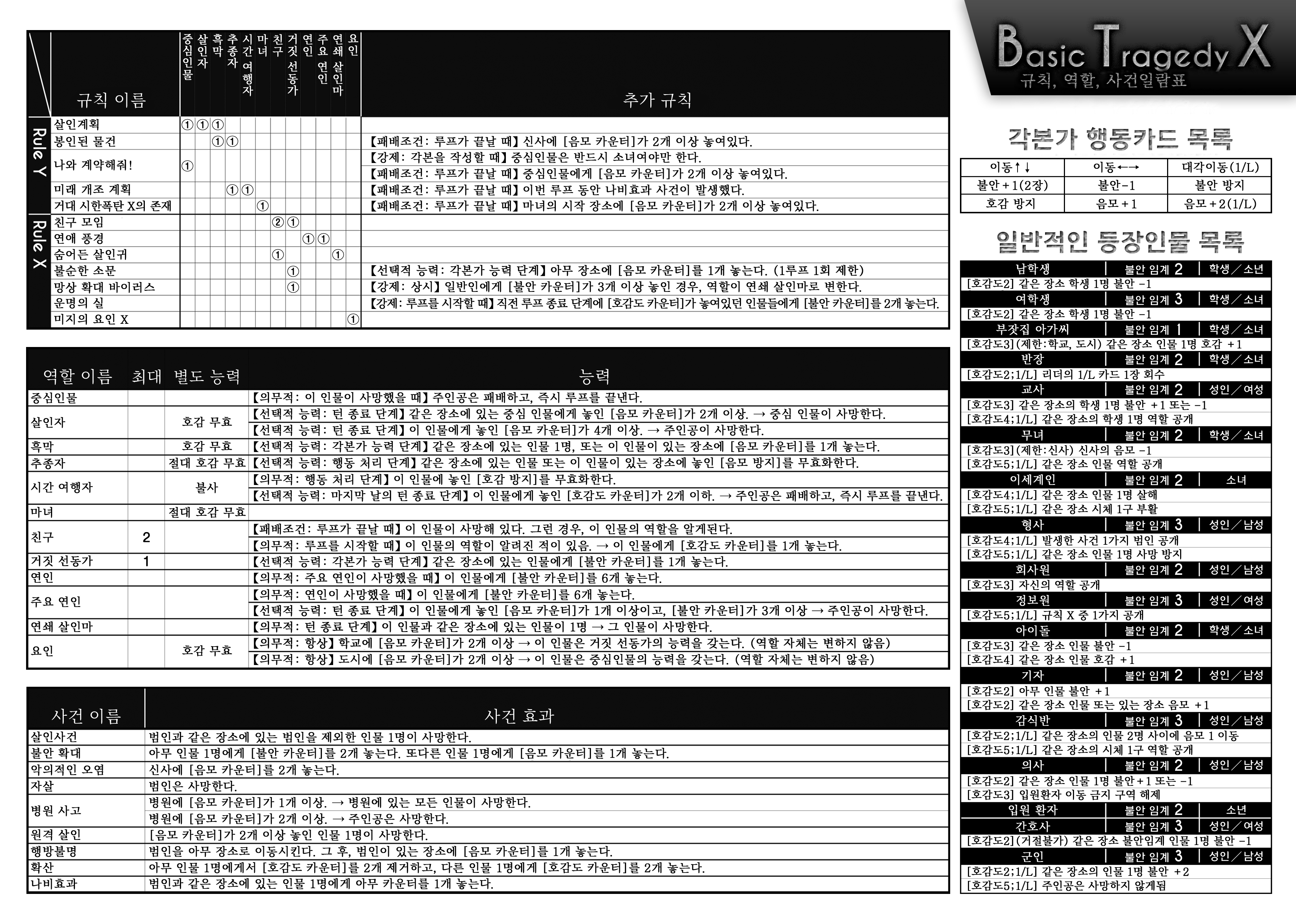 등장인물, 사건, 역할, 규칙이 정리된 요약 시트입니다. 확장팩 요약 시트는 추후 추가예정입니다.